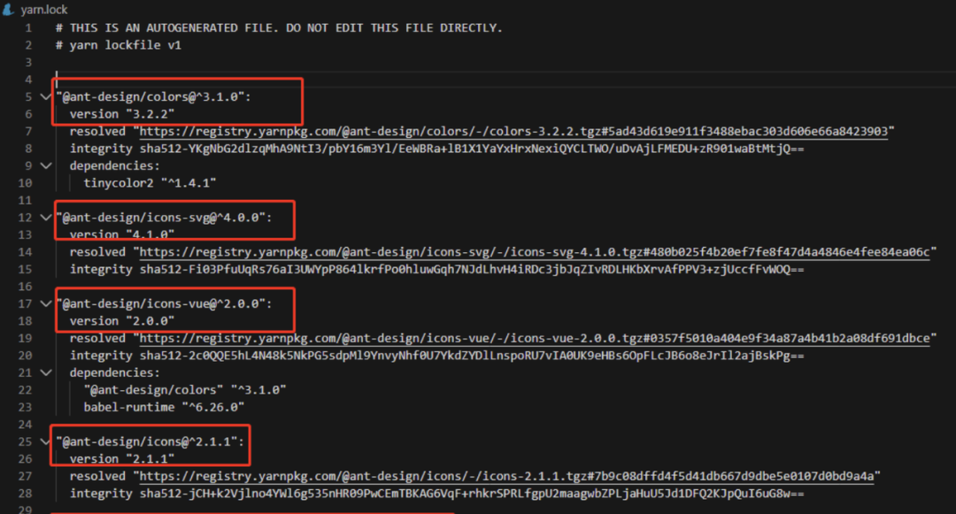 为了防止拉取到不同的版本,yarn 有一个锁定文件 (lock file) 记被确切安装上的模块的版本号。每次只要新增了一个模块,yarn 就会创建(或更新)yarn.lock 这个文件。这样就保证了每一次拉取同一个项目依赖时,使用的都是一样的模块版本。