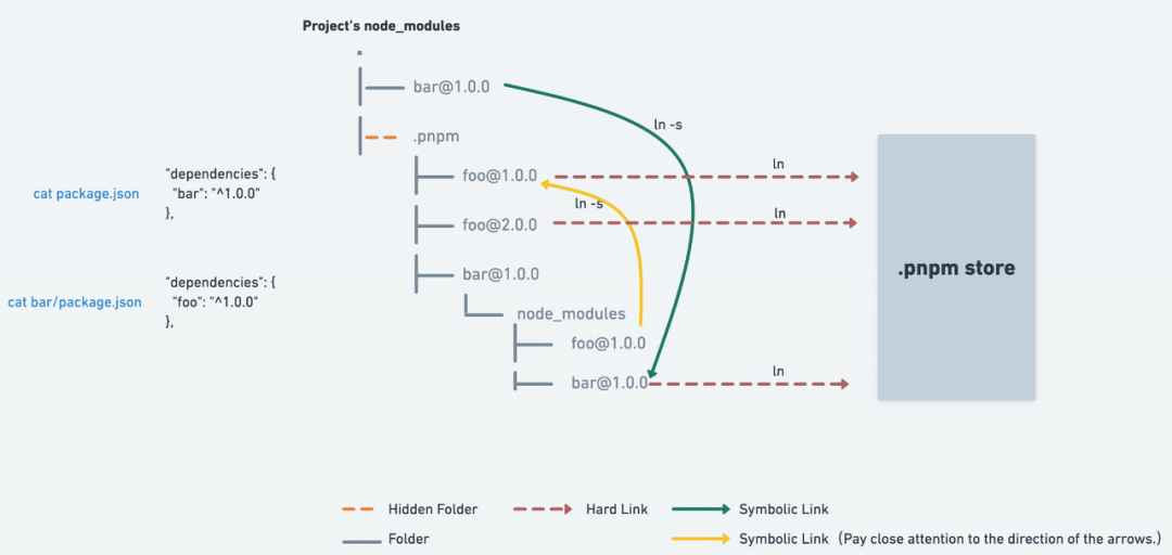 官方给了一张 pnpm 的实现原理图,配合着看一下就明白了: