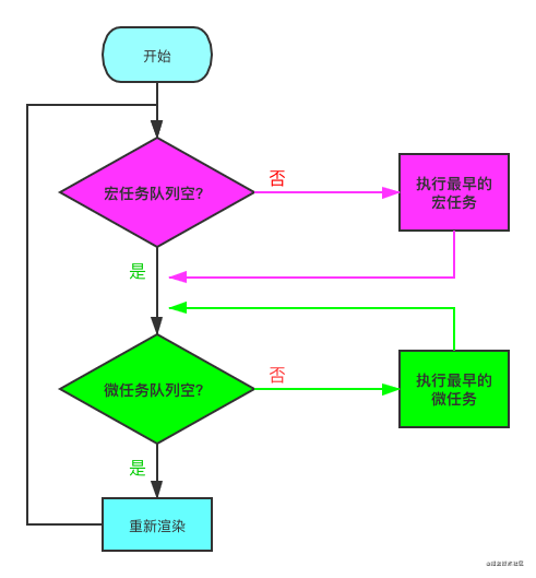 不空 --> 执行最早进入队列的任务 --> 继续检查微任务队列空不空