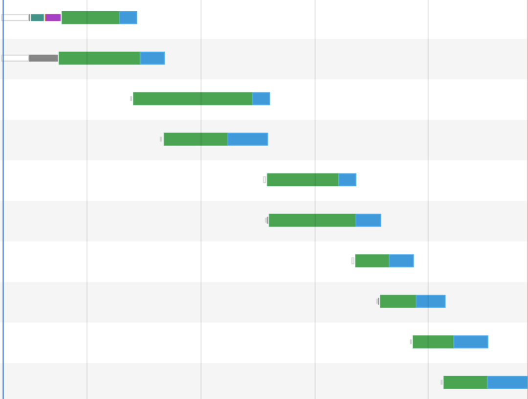 const arr = [];let i = 10;while (i--) { arr.push(`https://www.xiabingbao.com/upload/368662d904df5cbe4.jpg?t=${Math.random()}`);}promiseLimitByDepth(arr, 2, (url) => { return new Promise((resolve) => { const img = new Image(); img.src = url; // 这里暂时只考虑成功的情况 img.onload = resolve; });}).then(console.log);我们从图片加载的瀑布流里可以看到,每次最多只加载 2 张图片: