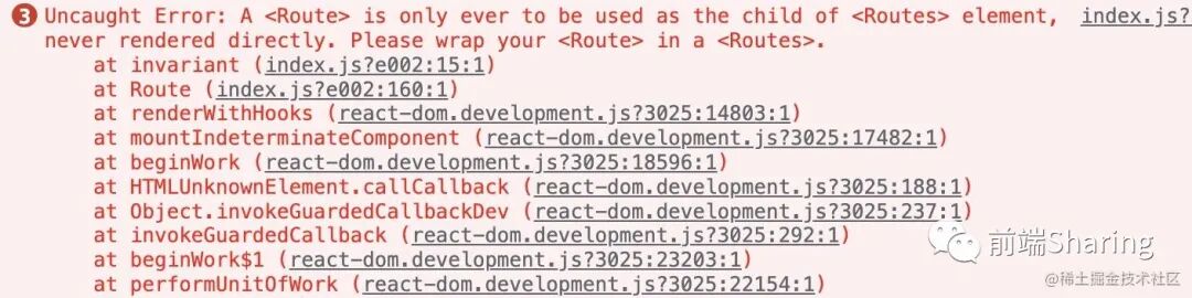 如果 Route 外层没有 Routes ,会报出错误。比如如下