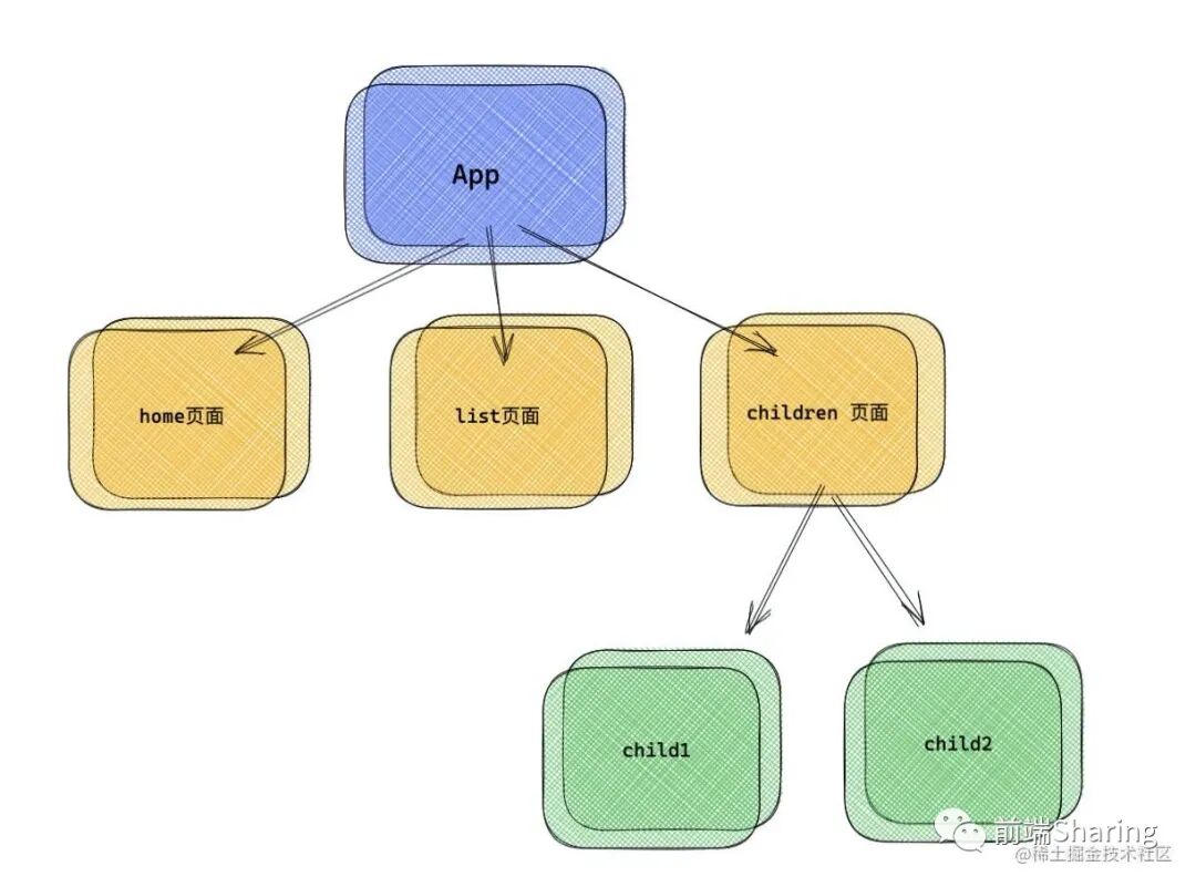 接下来我们来分析一下如果通过 navigator 实现跳转,比如 home 跳转到 child1 组件,那么会发生哪些事情呢?