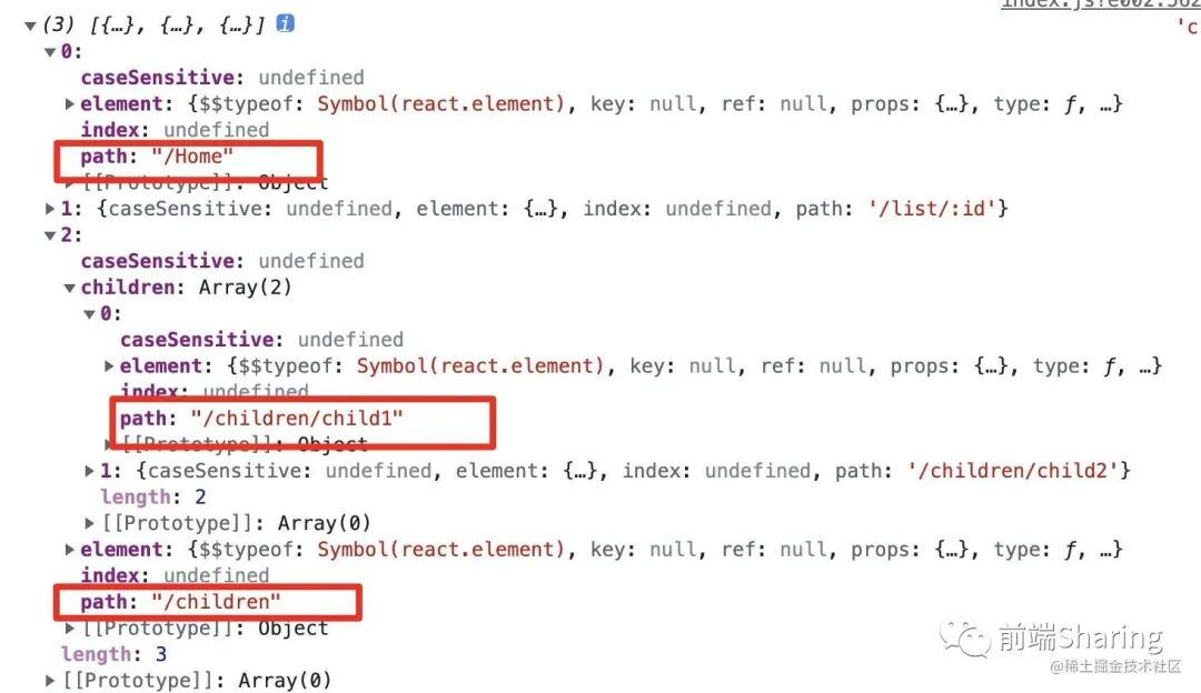 <Routes> <Route element={<Home />} path="/home" /> <Route element={<List/>} path="/list" /> <Route element={<Layout/>} path="/children" > <Route element={<Child1/>} path="/children/child1" /> <Route element={<Child2/>} path="/children/child2" /> </Route></Routes>element 会被转化成如下结构: