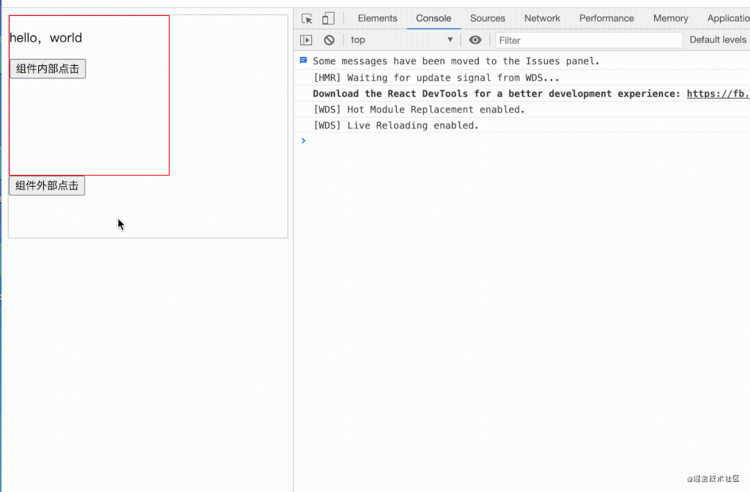 return <div> hello,world <button onClick={ this.say.bind(this) } >点击</button> </div>
