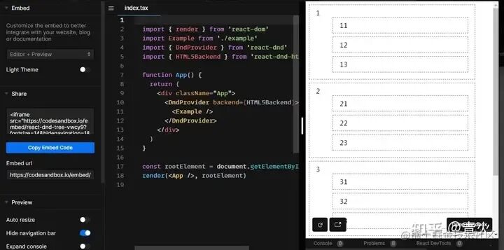 codesandbox.io/embed/react-sortable-hoc-tree-386oh%3Ffontsize%3D14%26hidenavigation%3D1%26theme%3Ddark: https://link.juejin.cn?target=codesandbox.io%2Fembed%2Freact-sortable-hoc-tree-386oh%253Ffontsize%253D14%2526hidenavigation%253D1%2526theme%253Ddark