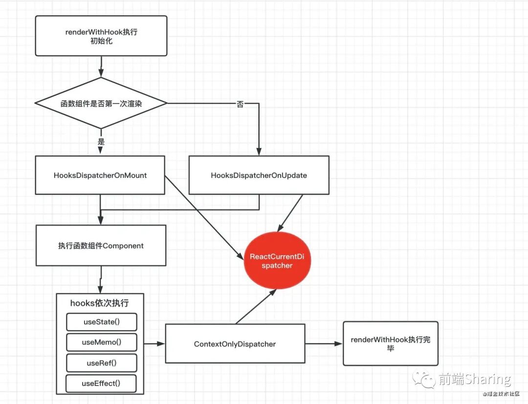 想要彻底弄明白hooks,就要从其根源开始,上述我们在引入hooks的时候,最后以一个ReactCurrentDispatcher草草收尾,线索全部断了,所以接下来我们只能从函数组件执行开始。