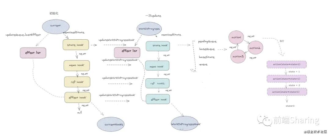 上述介绍了第一次渲染函数组件,react-hooks初始化都做些什么,接下来,我们分析一下,