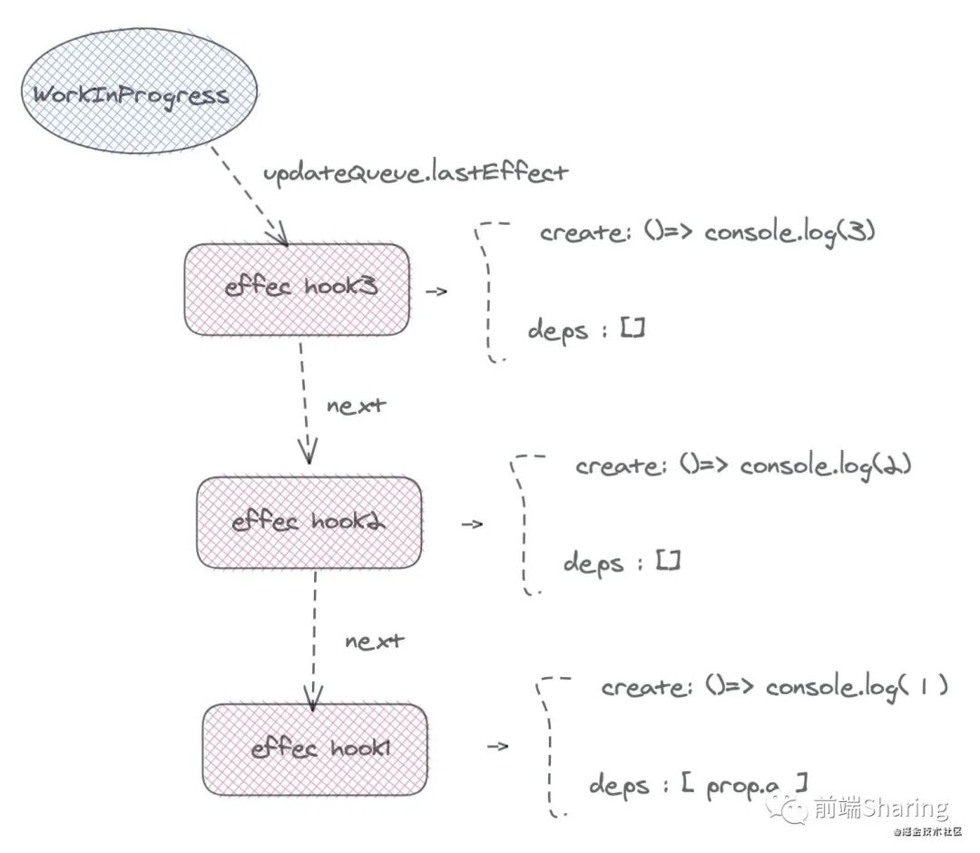不过这里有一点,值得注意,nextCreate()执行,如果里面引用了usestate等信息,变量会被引用,无法被垃圾回收机制回收,就是闭包原理,那么访问的属性有可能不是最新的值,所以需要把引用的值,添加到依赖项 dep 数组中。每一次dep改变,重新执行,就不会出现问题了。