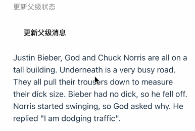 const getMessage = async () => { const res = await fetch('https://api.chucknorris.io/jokes/random') return res.json()}有了这个 api 之后,我们可以直接在父组件中调用该方法。