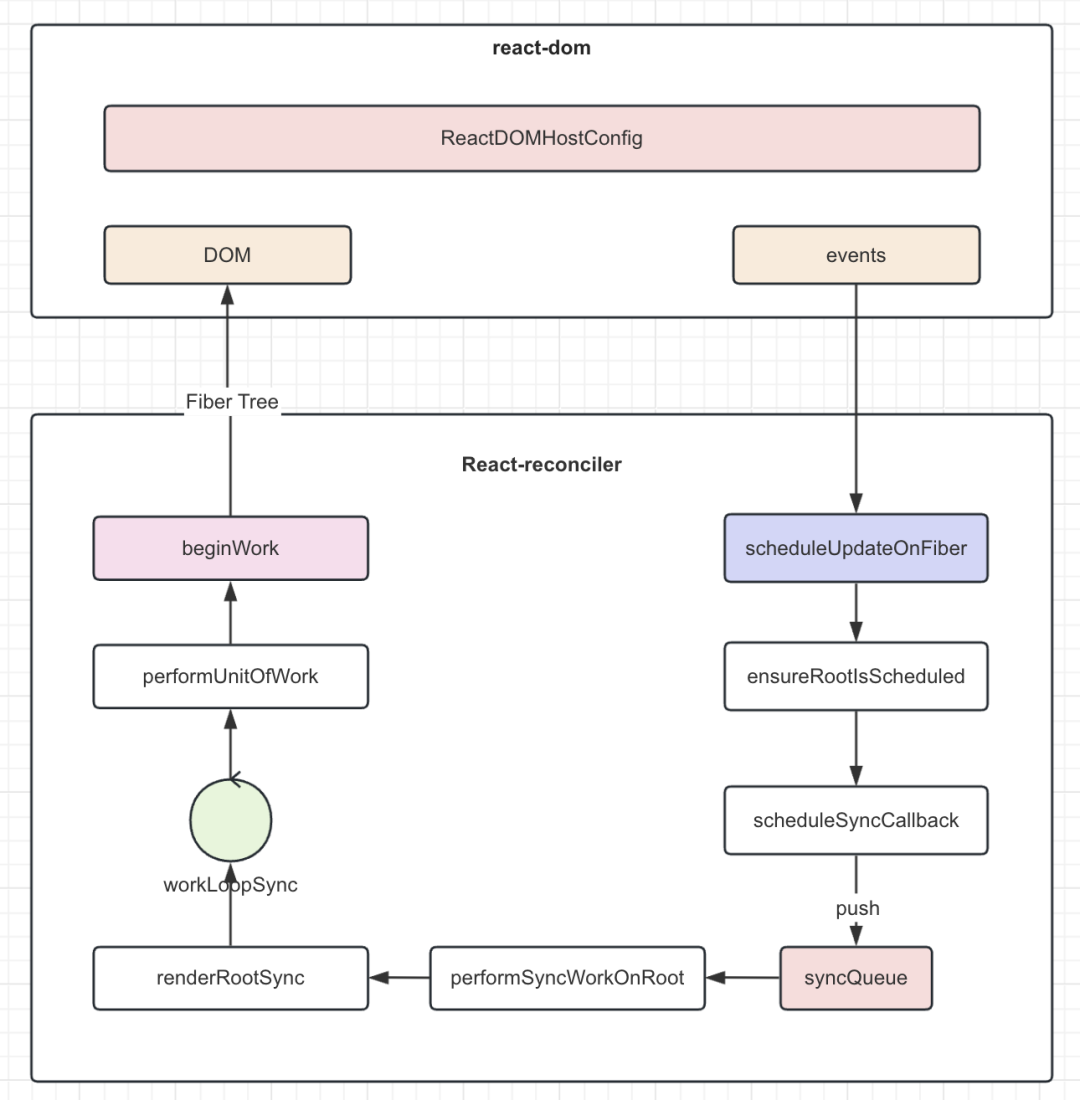 export function scheduleSyncCallback(callback: SchedulerCallback) { // Push this callback into an internal queue. We'll flush these either in // the next tick, or earlier if something calls `flushSyncCallbackQueue`. if (syncQueue === null) { syncQueue = [callback]; } else { // Push onto existing queue. Don't need to schedule a callback because // we already scheduled one when we created the queue. syncQueue.push(callback); }}这里的 callback 是之前传入的 performSyncWorkOnRoot,这是用来执行同步更新任务的方法。他的逻辑主要包括