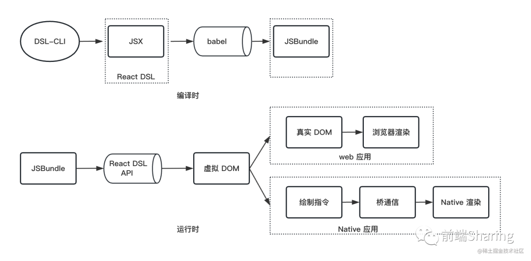 React DSL 本质也非常好理解。本质上也分为编译时和运行时两种。