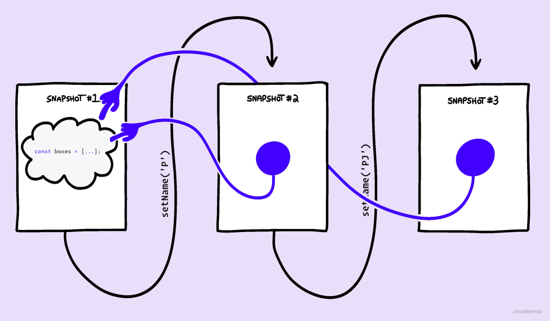 这里有一个图可以帮助你理解。在此之前,我们创建了一个全新的数组,作为每张快照的一部分: