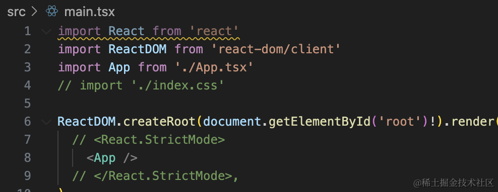 去掉 main.tsx 的 index.css 和 StrictMode: