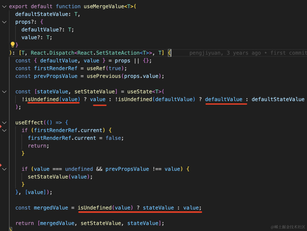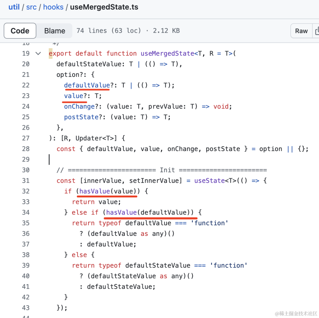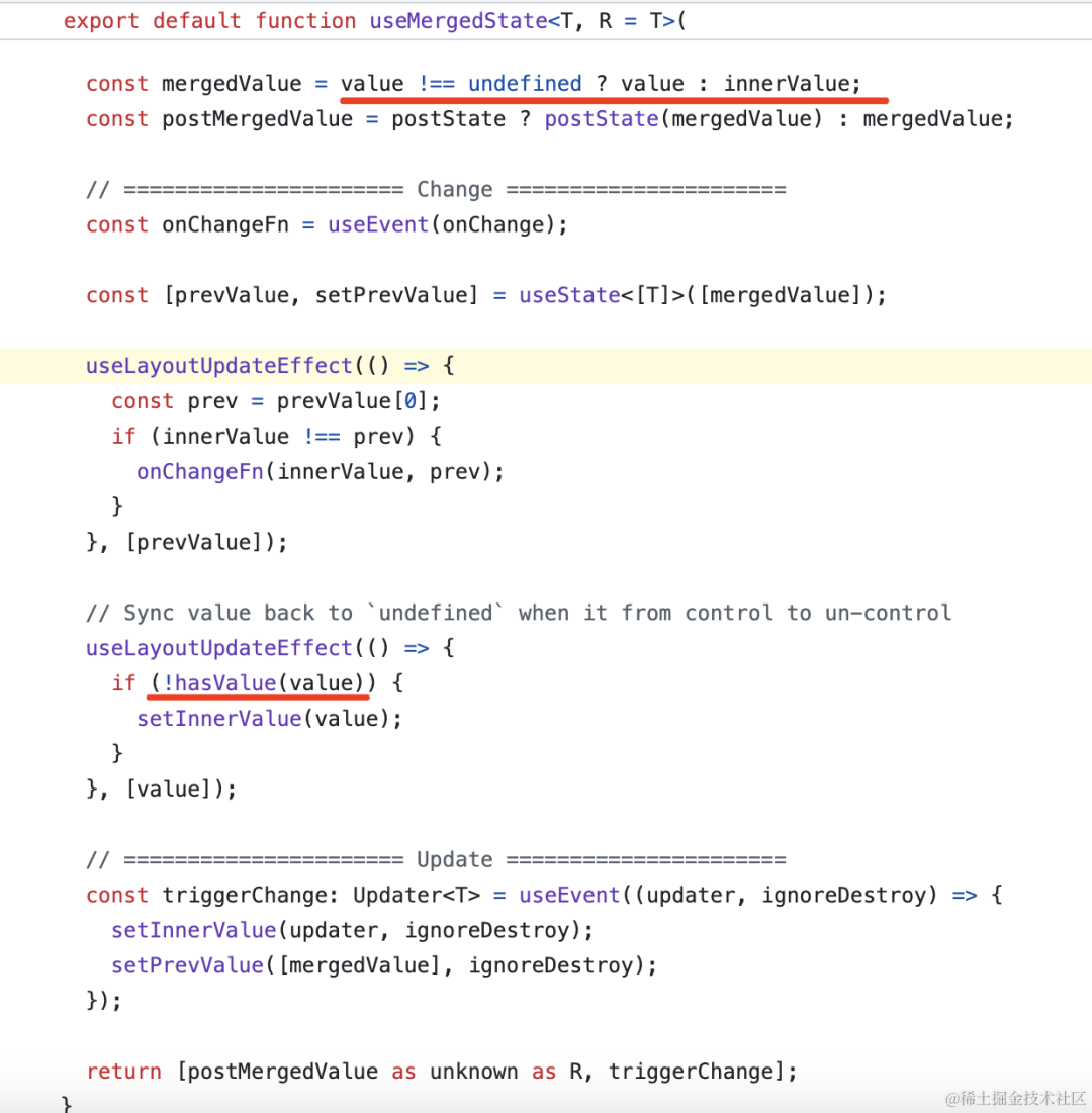 再比如 ant design 的工具包 rc-util 里的 useMergedValue 的 hook:
