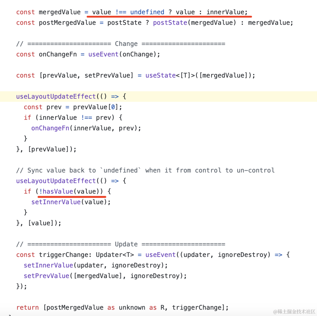 代码差不多,它也是 useState 根据 value 是不是 undefined 来设置 value 或者 defaultValue。