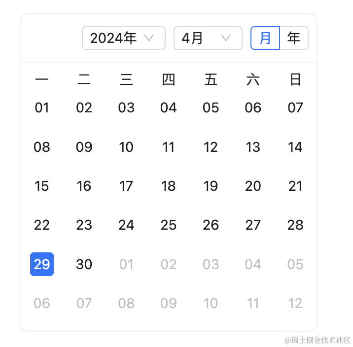 比如日历组件: