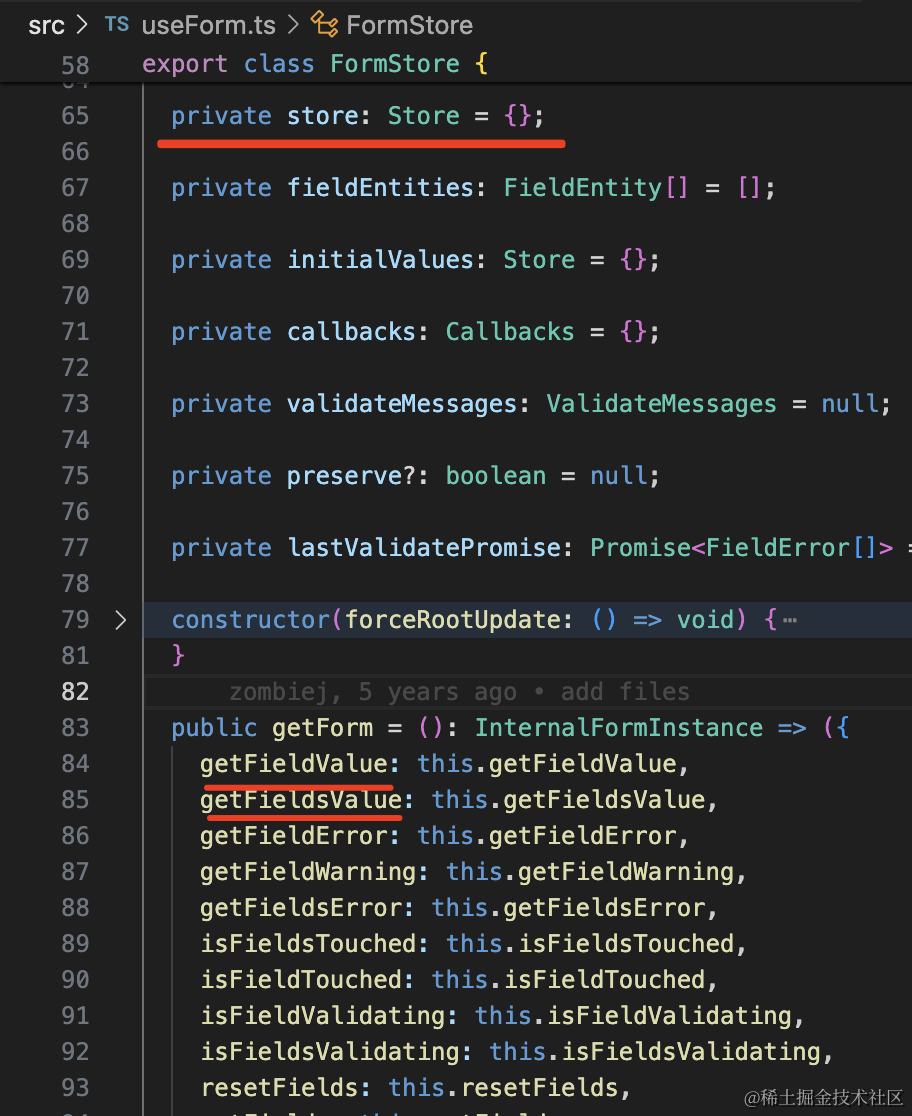 确实,那是因为 Form 组件内有一个 Store,会把表单值同步过去,然后集中管理和设置值: