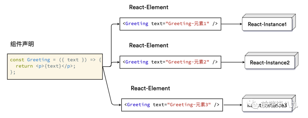 如果不需要使用 JSX语法,可以使用React.createElement。render方法中对 React.createElement的调用将**「创建」**这样的两个数据结构