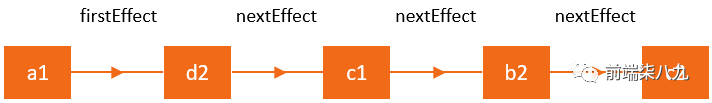当访问这些节点时,React 使用 firstEffect 指针来计算**「列表的开始位置」**,用 nextEffect将拥有效果的节点连接起来。 所以上图可以表示为这样的一个线性列表。