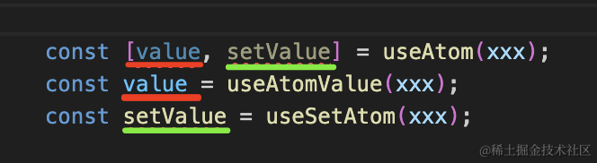 useAtomValue 是读取值,useSetAtom 是拿到写入函数。