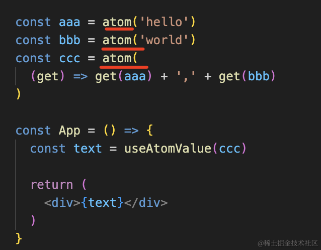通过 atom 定义一个原子状态,可以把它组合起来成为新的状态。