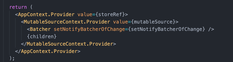RecoilRoot 最终返回了一个下面这个,里面的这个 Batcher,是用于状态修改时通知组件更新的。