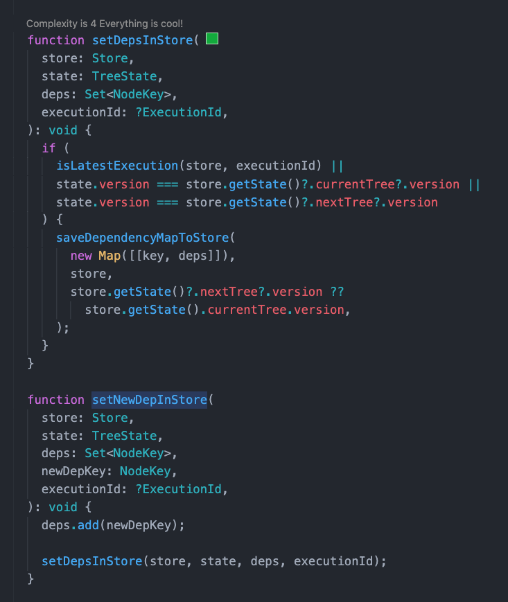 他调用了 setDepsInStore 来设置 selector 和 atom 的依赖关系。将 atom 的 key 加入到 deps 里面,从而映射了一个从 selector key 到多个 atom key 的 Map 关系。最后将映射关系存入到 storeState 的 nodeToNodeSubscriptions 字段里面。
