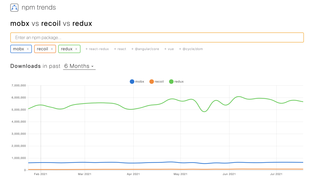 从图上可以看到,Redux 一骑绝尘,这也是因为 Redux 出现比较早,对早期的 React 状态管理痛点冲击很大。