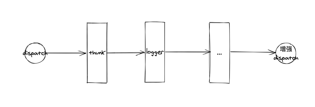 middleware 是在发起 action 之后,到 reducer 之前的扩展,它相当于对 dispatch 进行了一个增强,让其拥有更多的能力。