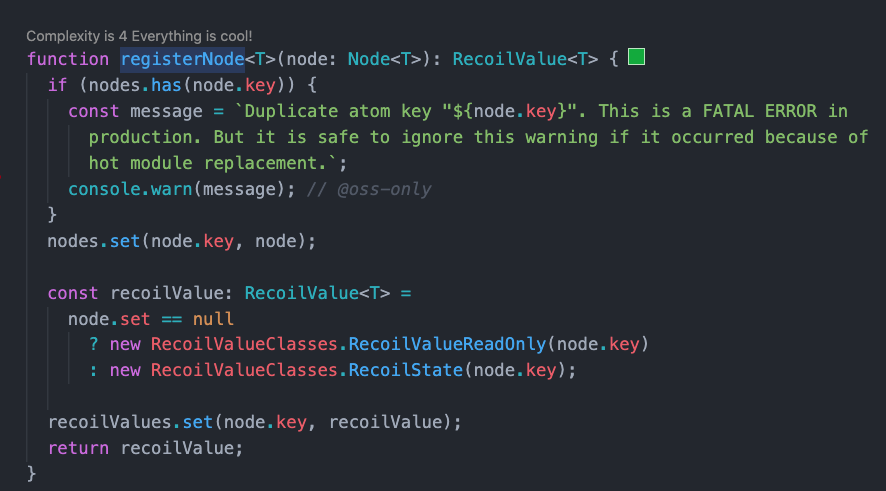 registerNode 的实现比较简单,主要是 new 了一个类,然后将其放到 recoilValues 里面。这两个类只有一个属性 key,所以最后拿到的 recoilValue 只是一个 key 值。