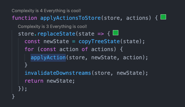 如果不走批量更新的逻辑,它就会执行 applyActionsToStore 方法。