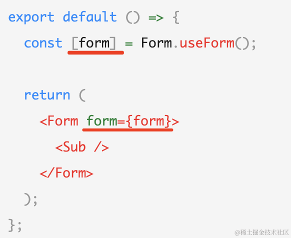 当然,在 antd 的 Form 里是通过 useForm 这个 hook 来创建 store,然后把它传入 Form 组件来用的。