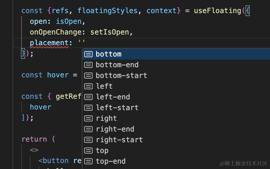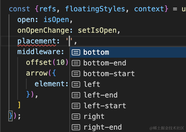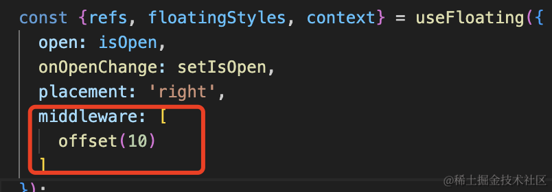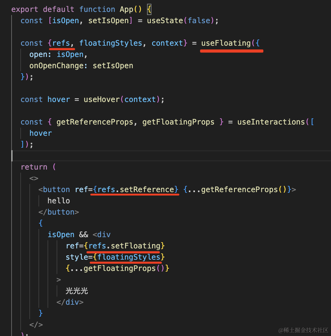 首先,用到了 useFloating 这个 hook,它的作用就是计算浮层位置的。