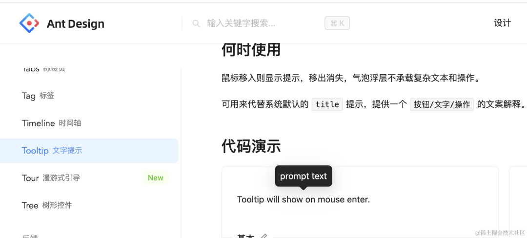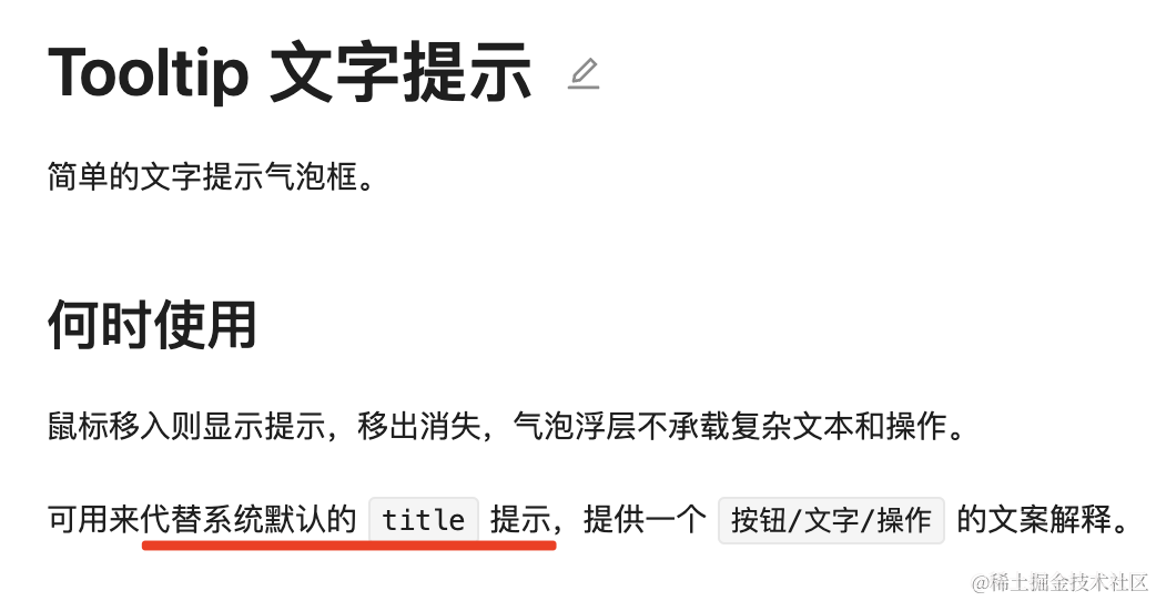 Tooltip(文字提示) 是用来代替 title 的,做一个文案解释。