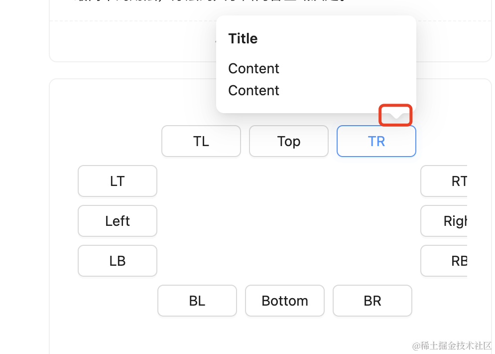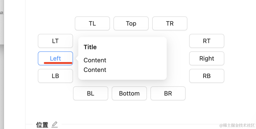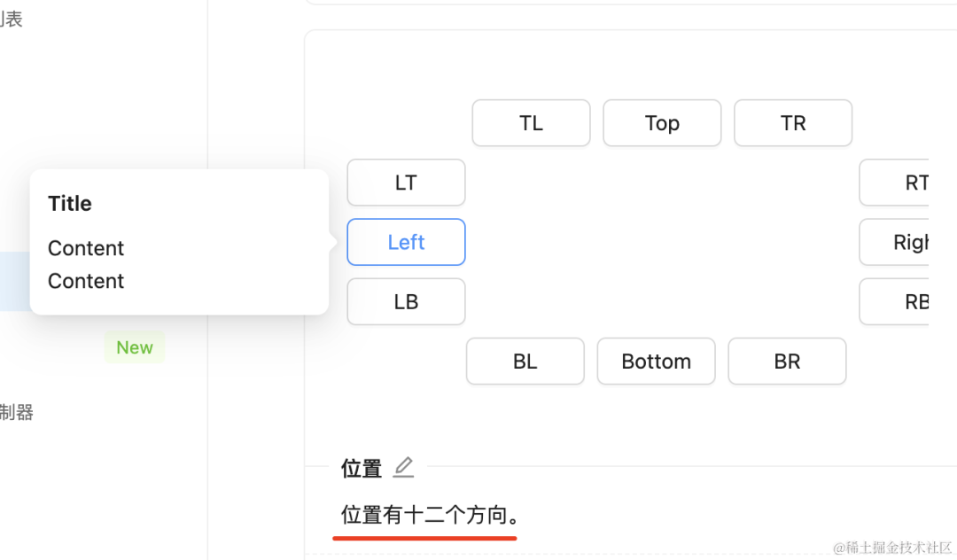 首先,placement 参数可以指定 12 个方向,top、topleft、topright、bottom 等: