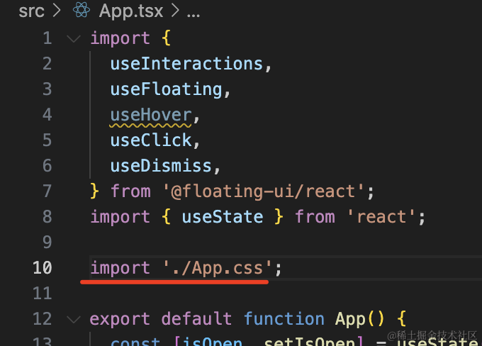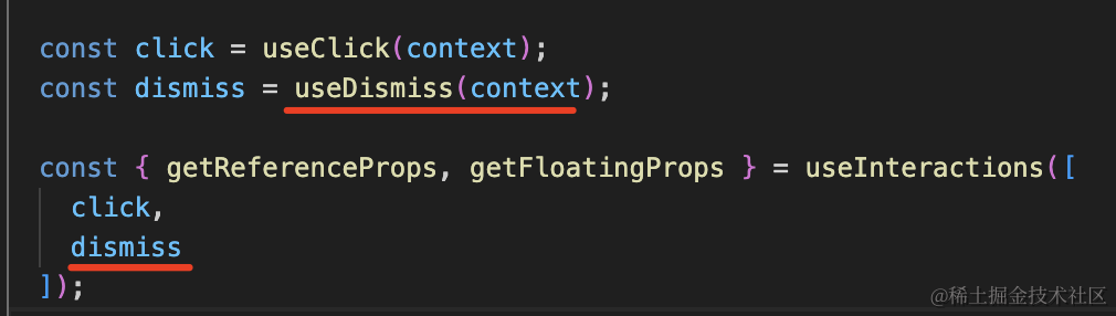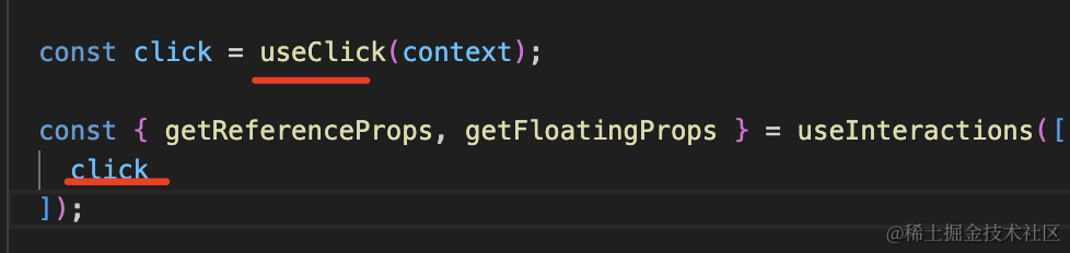也就是说 useFloating 是用来给浮层确定位置的,useInteractions 是用来绑定交互事件的。