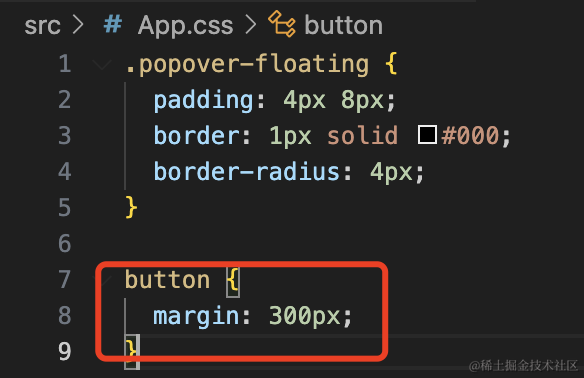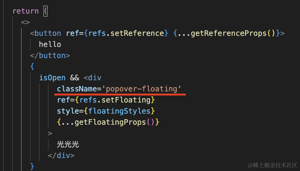 .popover-floating { padding: 4px 8px; border: 1px solid #000; border-radius: 4px;}整体代码和之前差不多,有几处不同: