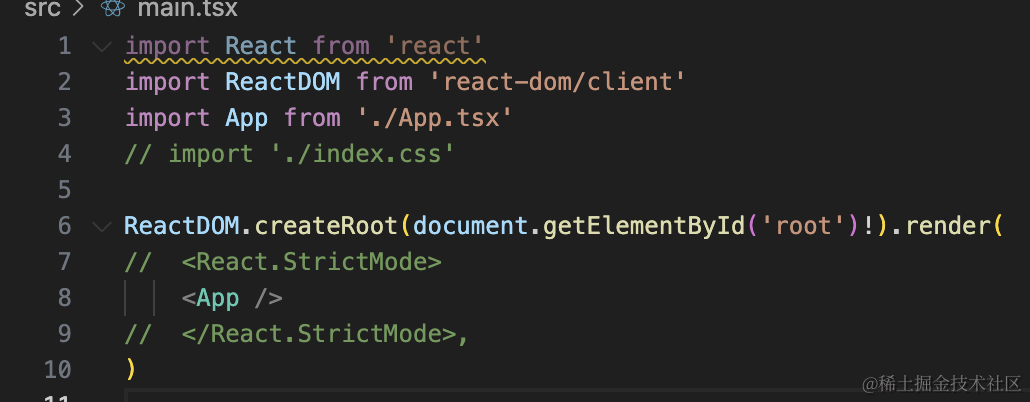 改下 main.tsx,去掉 index.css,并且把 StrictMode 去掉,它会导致重复渲染: