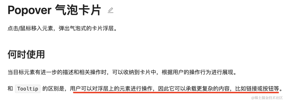 而 Popover(气泡卡片)可以放更多的内容,可以交互: