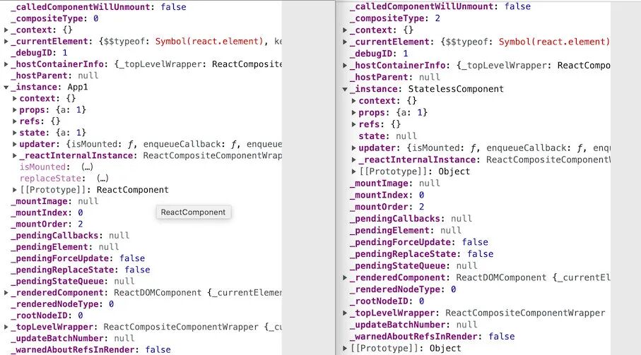 通过类组件和函数组件的渲染之后的数据结构来看,两者之间也没有区别。