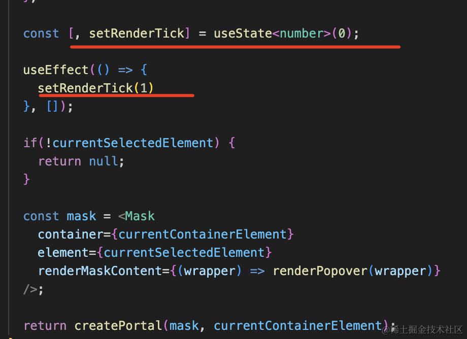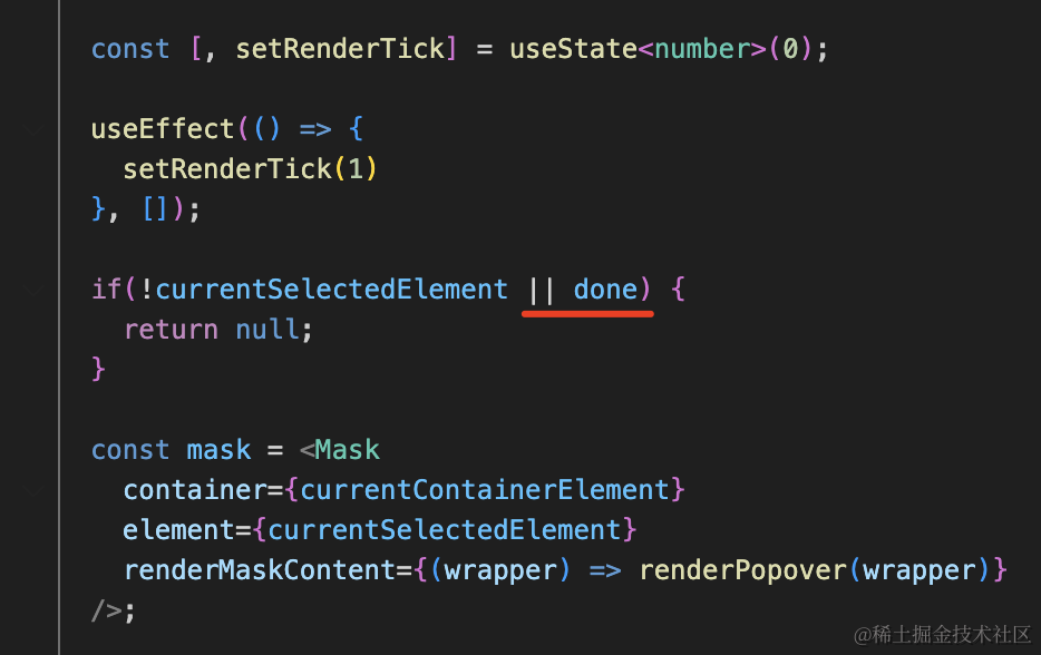 此外,还要注意,mask 需要在 dom 树渲染完之后才能拿到 dom 来计算样式,所以需要 useEffect + setState 来触发一次额外渲染。