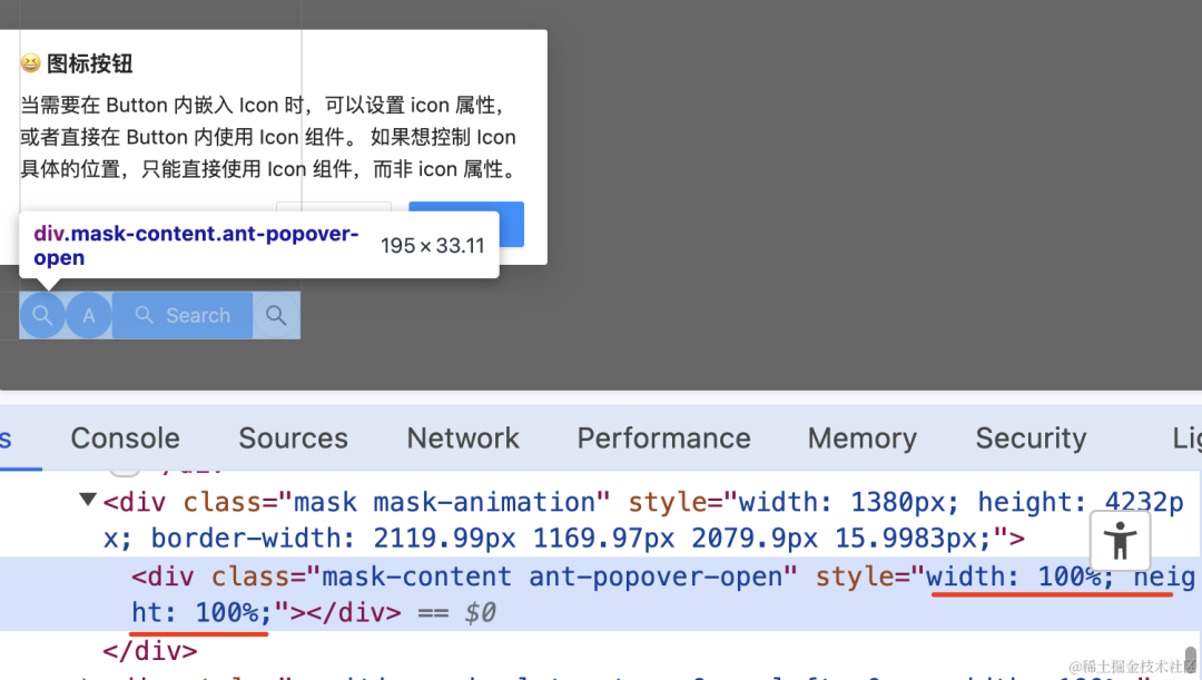 然后我们在内部又加了一个宽高为 100% 的 div,把它暴露出去,外部就可以用它来加 Popover 或者其他内容: