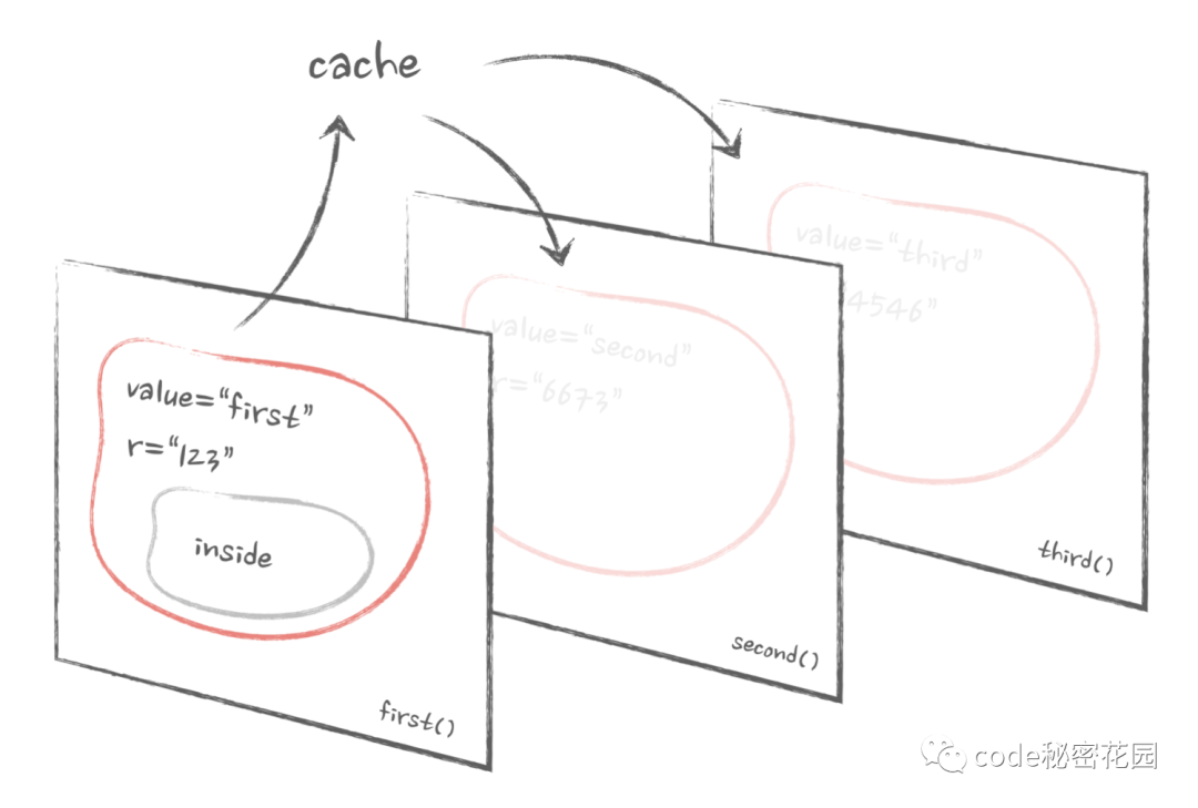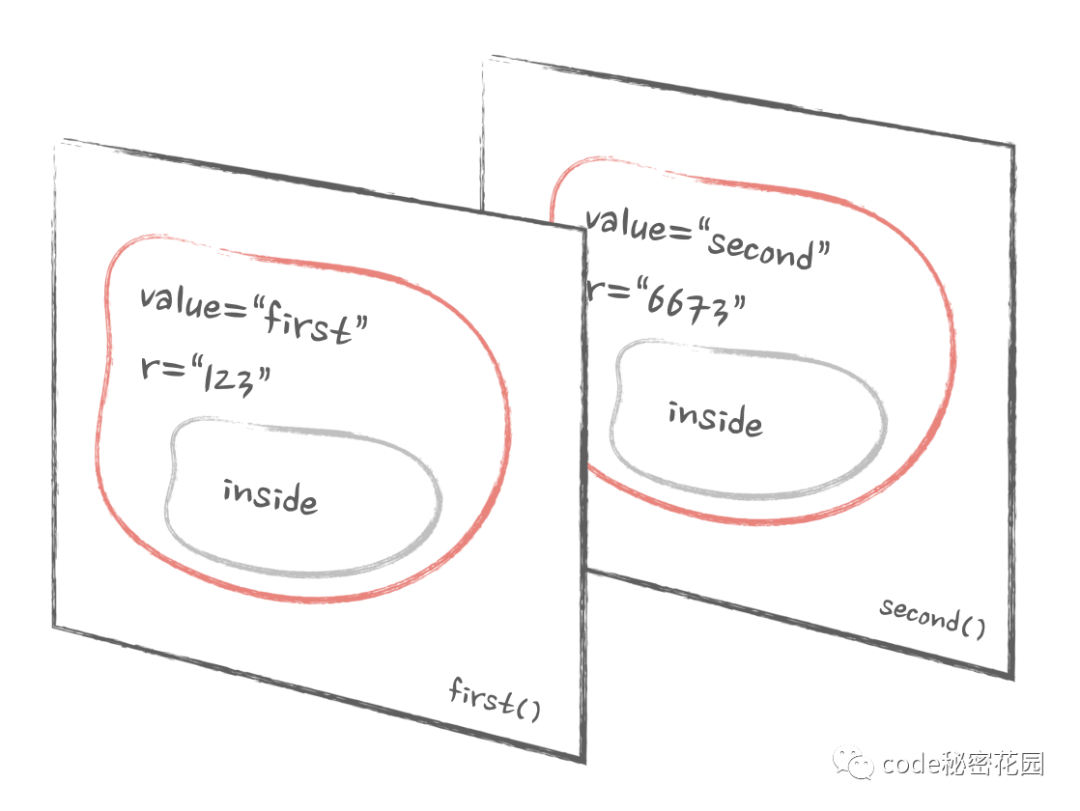 const something = (value) => { const r = Math.random(); const inside = () => { // ... }; return inside;};const first = something('first');const second = something('second');first(); // logs random numbersecond(); // logs another random number这就像拍摄一些动态场景的照片一样:只要按下按钮,整个场景就会永远 “冻结” 在照片中。下次按下按钮不会改变之前拍摄的照片中的任何内容。
