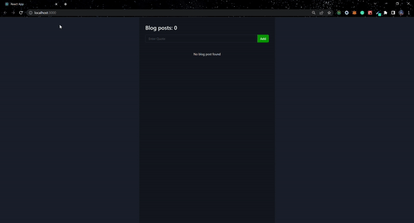 import React, { useEffect, useState } from "react";import { Box, Button, Card, CardBody, CardFooter, Flex, Image, Input, Stack, Text,} from "@chakra-ui/react";import { useGlobalState } from "./store";const App = () => { const state = useGlobalState(); const [data, setData] = useState([]); const [content, setContent] = useState(""); const [edit, setEdit] = useState(false); const [updateId, setUpdateId] = useState(0); const fetchBlog = () => { setData(state.fetchBlogs()); }; useEffect(() => { fetchBlog(); // eslint-disable-next-line react-hooks/exhaustive-deps }, []); const addBlog = () => { const blog = { id: state.getCountBlog() + 1, content: content, }; state.addBlog(blog); setContent(""); }; const updateBlog = (id) => { const blog = { id, content, }; state.updateBlog(id, blog); setContent(""); setUpdateId(0); setEdit(false); }; const deleteBlog = (id) => { state.deleteBlog(id); }; return ( <Box display="flex" flexDirection="column" justifyContent="flex-start" alignItems="center" maxW="1440px" minH="100vh" m="auto" > <Box width={{ base: "auto", md: "700px" }} minH="100vh" mt="0rem" bg={{ base: "transparent", md: "blackAlpha.400" }} p={8} > <Text fontSize="28px" fontWeight="600" mb={4}> Blog posts: {state.getCountBlog()} </Text> <Flex> <Input value={content} onChange={(e) => setContent(e.target.value)} errorBorderColor="crimson" placeholder="Enter Quote" borderInlineEndRadius={0} /> {edit ? ( <Button onClick={() => updateBlog(updateId)} borderInlineStartRadius={0} bg="green" color="#fff" > Update </Button> ) : ( <Button onClick={addBlog} borderInlineStartRadius={0} bg="green" color="#fff"> Add </Button> )} </Flex> <Box my={8}> {data.length < 1 && ( <Text py={4} textAlign="center"> No blog post found </Text> )} {data && data.map((item, index) => ( <Card key={index} direction={{ base: "column", sm: "row" }} overflow="hidden" variant="outline" my={4} > <Image objectFit="cover" maxW={{ base: "100%", sm: "200px" }} src="https://images.unsplash.com/photo-1667489022797-ab608913feeb?ixlib=rb-4.0.3&ixid=MnwxMjA3fDB8MHxlZGl0b3JpYWwtZmVlZHw5fHx8ZW58MHx8fHw%3D&auto=format&fit=crop&w=800&q=60" alt="Caffe Latte" /> <Stack w="full"> <CardBody> <Text fontSize="24px" fontWeight="600" py="2"> {item.get(item).content} </Text> </CardBody> <CardFooter display="flex" justifyContent="flex-end" gap={4}> <Button onClick={() => { setContent(item.get(item).content); setEdit(true); setUpdateId(item.get(item).id); }} bg="blue" color="#fff" > Edit </Button> <Button onClick={() => deleteBlog(item.get(item).id)} bg="red" color="#fff" > Delete </Button> </CardFooter> </Stack> </Card> ))} </Box> </Box> </Box> );};export default App;我们在前面的代码块中创建了命名函数,并将函数从全局状态传递到每个函数中。只需使用 item.get(item).content 或 item.value.content 在 Hookstate 中显示一个值。