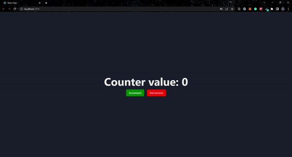 import React from "react";import { Box, Button, Flex, Text } from "@chakra-ui/react";import { useGlobalState } from "./store";const App = () => { const state = useGlobalState(); const increment =()=> { state.increment() } const decrement =()=> { state.decrement() } return ( <Box display="flex" flexDirection="column" justifyContent="center" alignItems="center" maxW="1440px" minH="100vh" m="auto" > <Text textAlign="center" fontWeight="700" fontSize={{base: "32px", md: "64px"}}> Counter value: {state.getCount()}{" "} </Text> <Flex gap={4}> <Button onClick={() => increment()} bg="green" color="#fff">Increment</Button> <Button onClick={() => decrement()} bg="red" color="#fff">Decrement</Button> </Flex> </Box> );};export default App;我们现在可以通过访问全局状态 useGlobalState,这是从 导入的自定义 hook,我们将其设置为在更新的组件中 src/store/index.js 调用的变量。我们现在可以全局访问读取和改变状态。stateApp.js