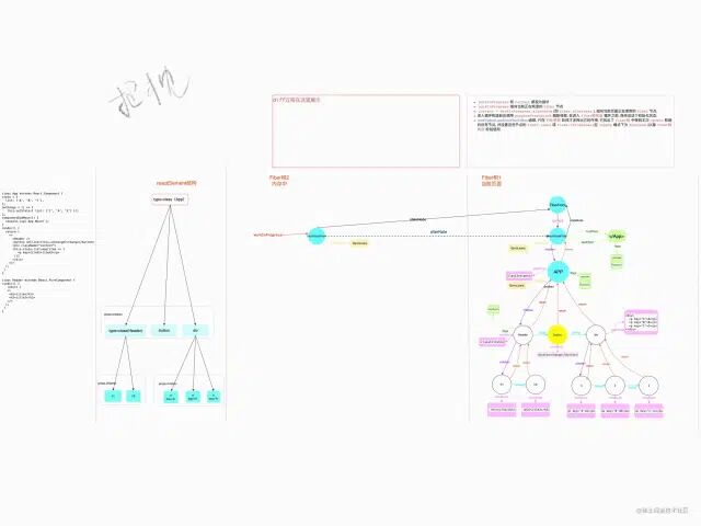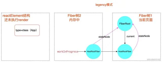 fiber树 (已经被展示出来, 挂载到fiberRoot.current上). 如果是初次构造 (初始化渲染), 页面还没有渲染, 此时界面对应的 fiber 树为空 (fiberRoot.current = null).其二: 正在构造的
