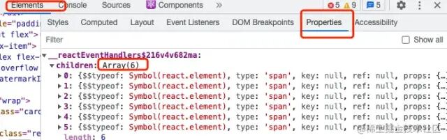 单节点对应演示, 可以去浏览器的Elements->Properties查看