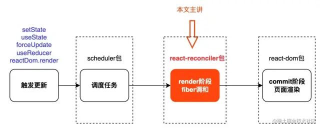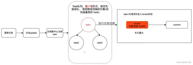 注册调度任务: react-reconciler 收到更新需求之后, 并不会立即构造 fiber 树, 而是去调度中心 scheduler 注册一个新任务 task, 即把更新需求转换成一个 task.