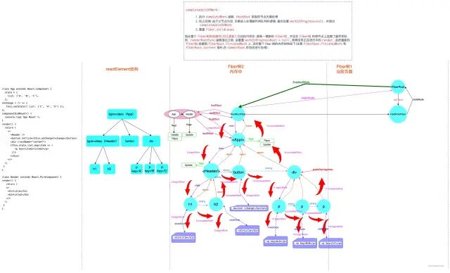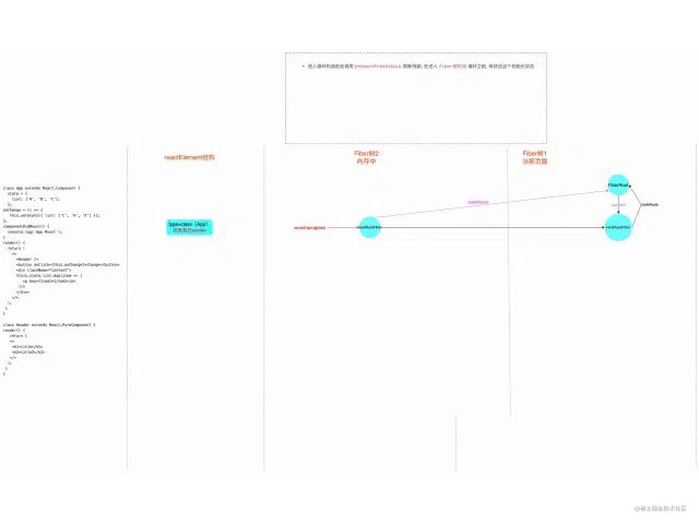 在上文我们梳理了ReactElement, Fiber, DOM三者的关系, fiber树的构造过程, 就是把ReactElement转换成fiber树的过程. 但是在这个过程中, 内存里会同时存在 2 棵fiber树: