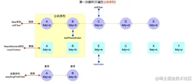 非公共序列, 优先复用 oldFiber 序列中的节点。